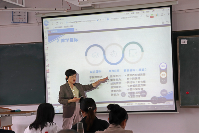 第一位参赛选手陈虹虹讲解的课程为《新闻摄影:摄影活动特性》,她在说课环节对该课程的内容结构、重难点、教学目标、教学方法及教学流程进行了清晰的梳理。在15分钟的讲课环节中,陈虹虹以小孔成像的知识原理为引入,结合布置课后思考、学习通小组讨论的教学方法,介绍了摄影的光学特性及摄影技术的局限性,并通过三组图片案例的对比分析,阐释说明了成像局限性带来的“技术迷思”,引导员工警惕“有图未必有真相”。她充分的授课准备、有条不紊的教学思路、对教学内容细致而系统化的专业呈现得到了评委会的一致肯定。