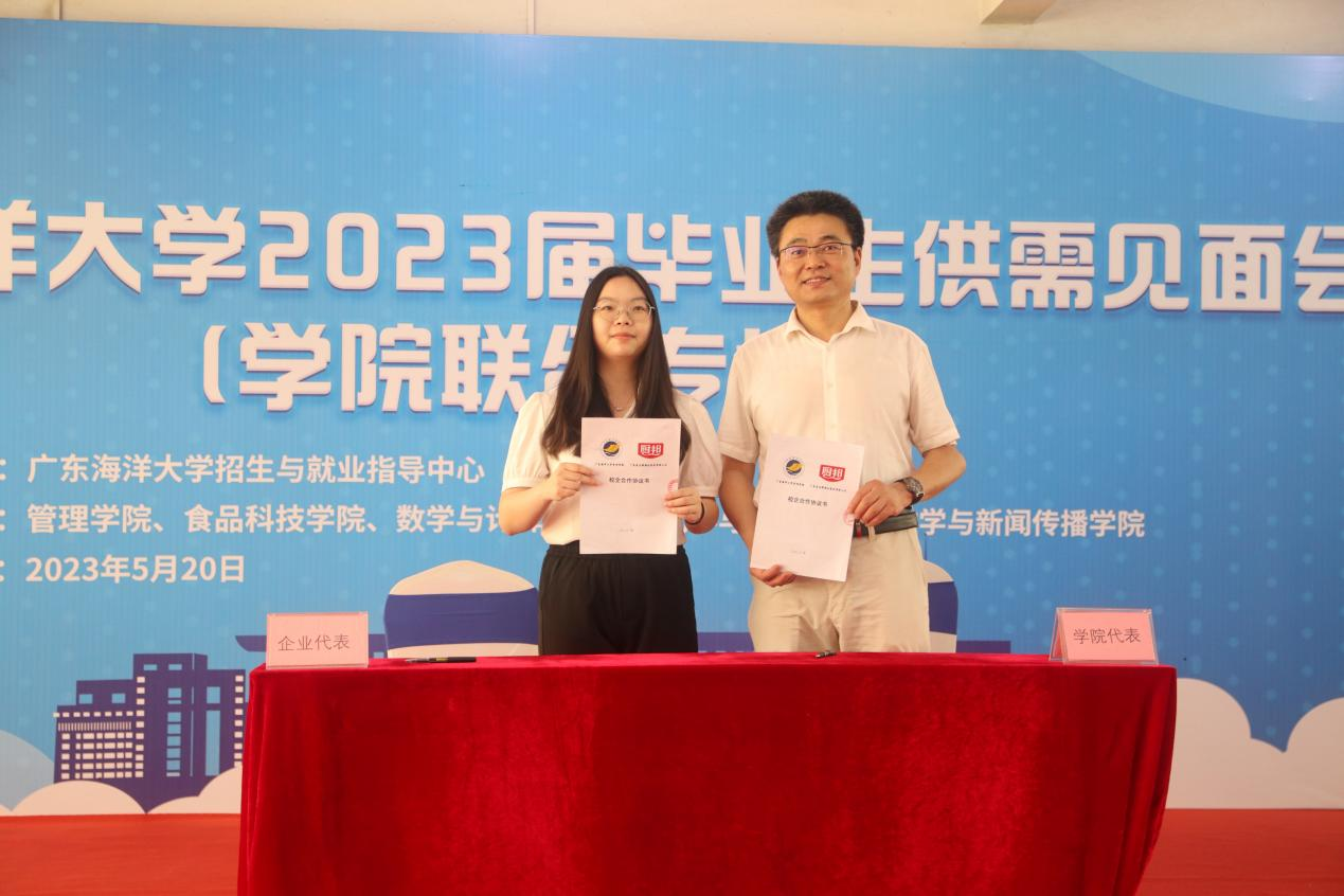 开幕式首先由公司党委副书记林晓敏致辞。他简要介绍了公司的发展情况与2023届毕业生的就业情况,强调“国以人兴,政以才治”,对各公司、用人企业、毕业生提出了三点希望:一是希望各公司进一步深化校企合作,积极对接企业人才需求,搭建好供需的桥梁,助力公司毕业生高质量就业;二是希望企业为高质量发展储备高质量人才,充分挖掘员工的潜力,最大限度招收接纳公司毕业生,用心用情用力用好人才,留住人才,实现经济发展和扩大就业的并举双赢;三是希望毕业生转变观念,树立正确的就业观,既要仰望星空,更要脚踏实地,及时适当调整就业预期,先就业再择业,勇于到企业一线和艰苦的岗位去锻炼,敢于到新的行业去打拼,以诚实的劳动和出色的业绩成就人生价值。随后,深圳市讴旎科技有限公司总经理、公司优秀员工吴宏杨作为企业代表作了发言。他感恩母校的培养,结合自身奋斗的历程,深刻阐释了海大精神,并勉励求职的员工要积极就业,投身企业一线贡献青春力量。开幕式上,管理公司、食品科技公司、数学与计算机公司与部分参会企业签订了共建教学实训就业基地协议,并进行了授牌仪式。