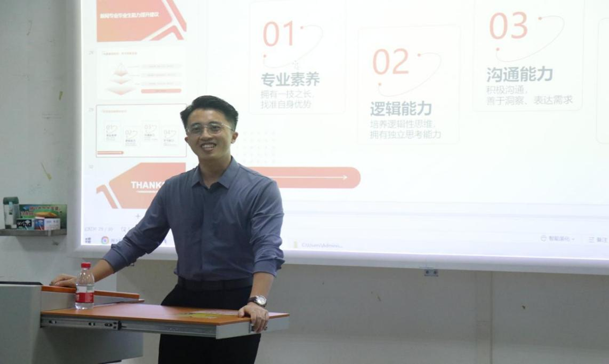 杨志文毕业后进入佛山日报社工作,2016年注册成立广东跨越互动传媒有限公司,此后一直专注于政务创意技术交互宣传。他的创业故事从员工时代运营“传媒小二”公众号开始,一直讲到跨越公司的创立和运营,体会最深的是,服务好、效率高是公司顺利起步的关键。他认为创业和专业关联程度高,建议同学们认真学习专业知识,培养对专业的兴趣,加深对专业的了解。