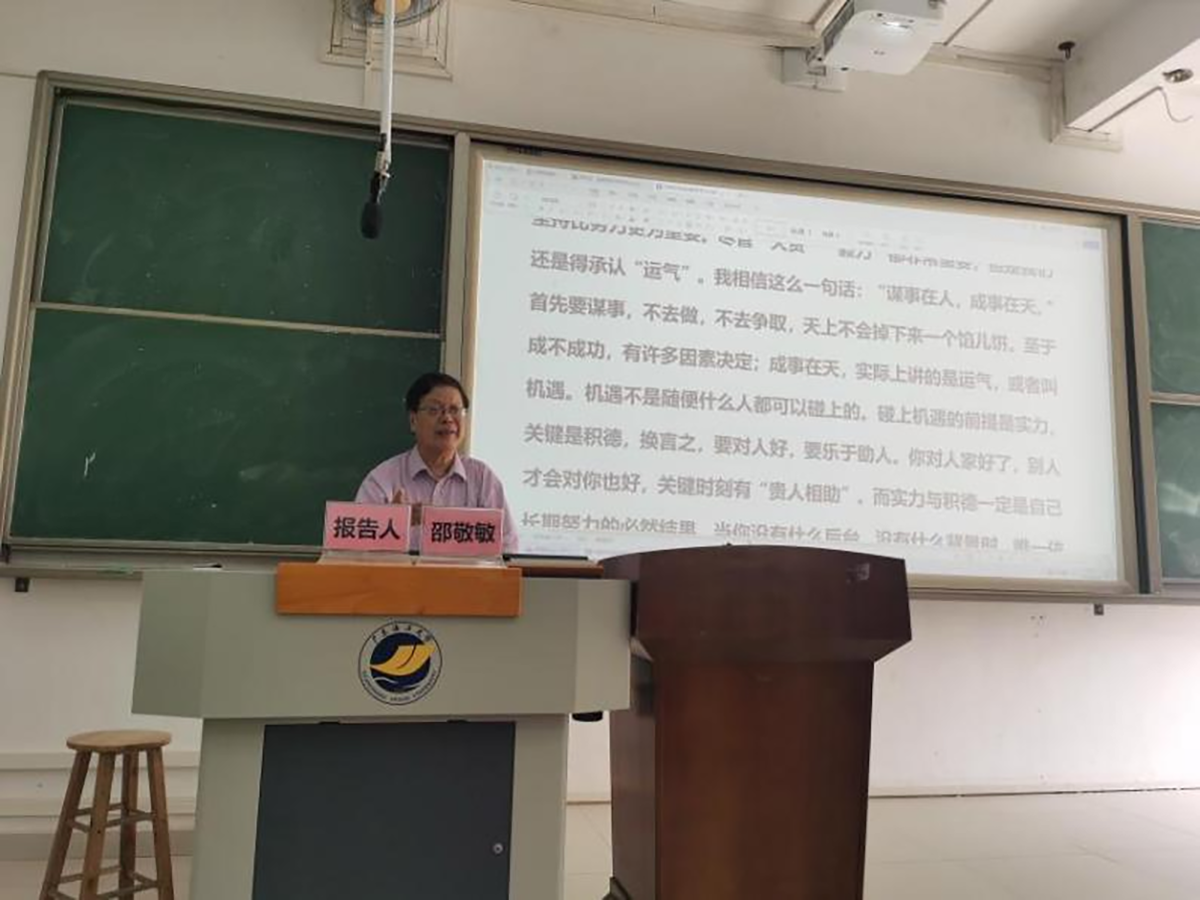 邵敬敏先生是暨南大学文公司特聘一级教授、博士生导师,享受国务院特殊津贴专家。他在报告中讲述了追逐汉语梦的内涵和汉语走向世界的动因、理念,深情回顾了自己在语言学求索之路上的心路历程,分享了自己在研究过程中的点滴体会,强调语言学研究应该具有“语言自信”与“汉字自信”,必须拓宽更高层次“国际视野”、提倡“双通道的国际接轨”,必须高度重视“语言应用”与“语言服务”。