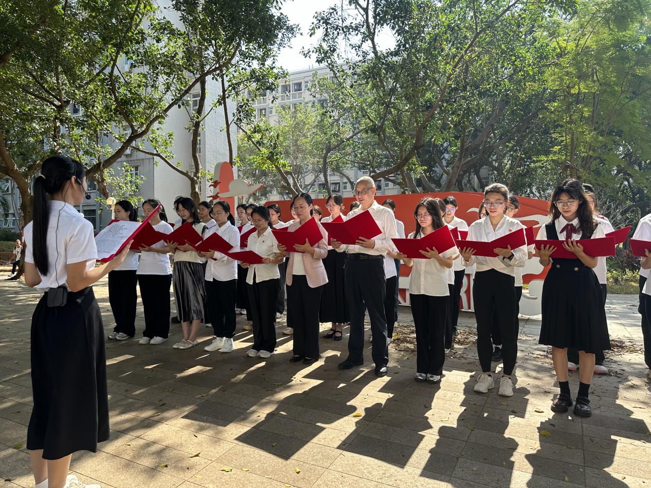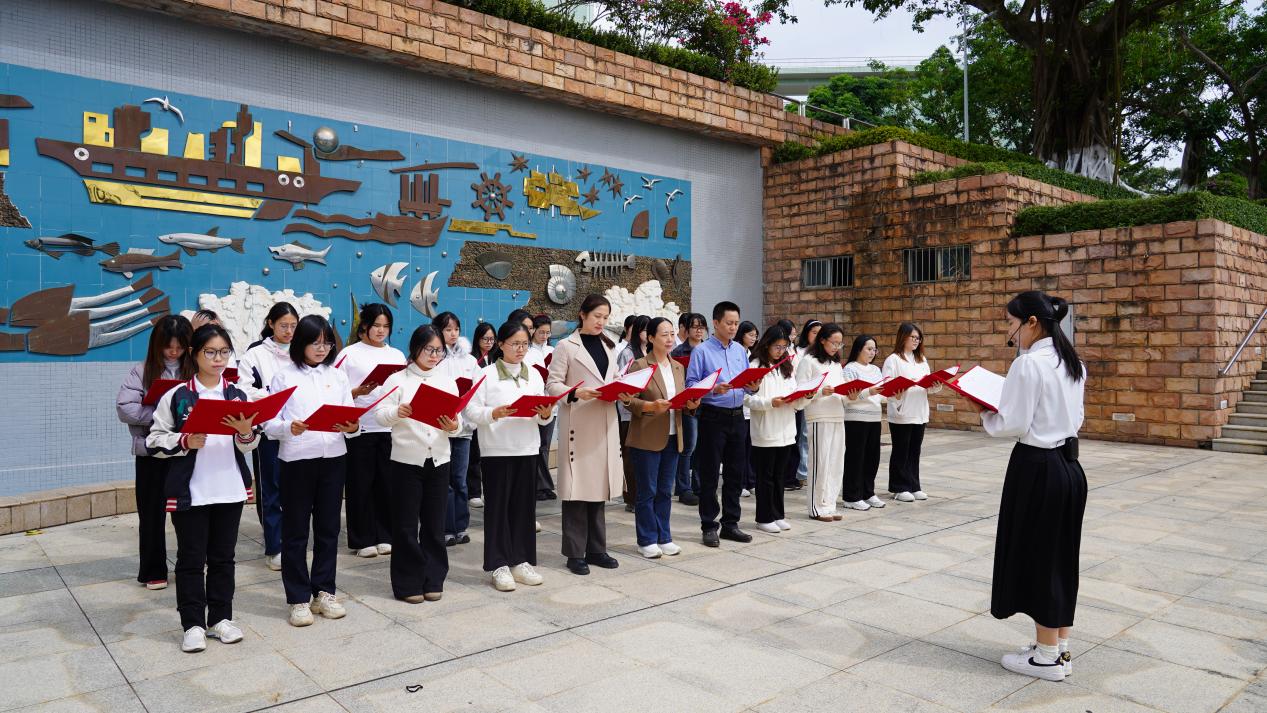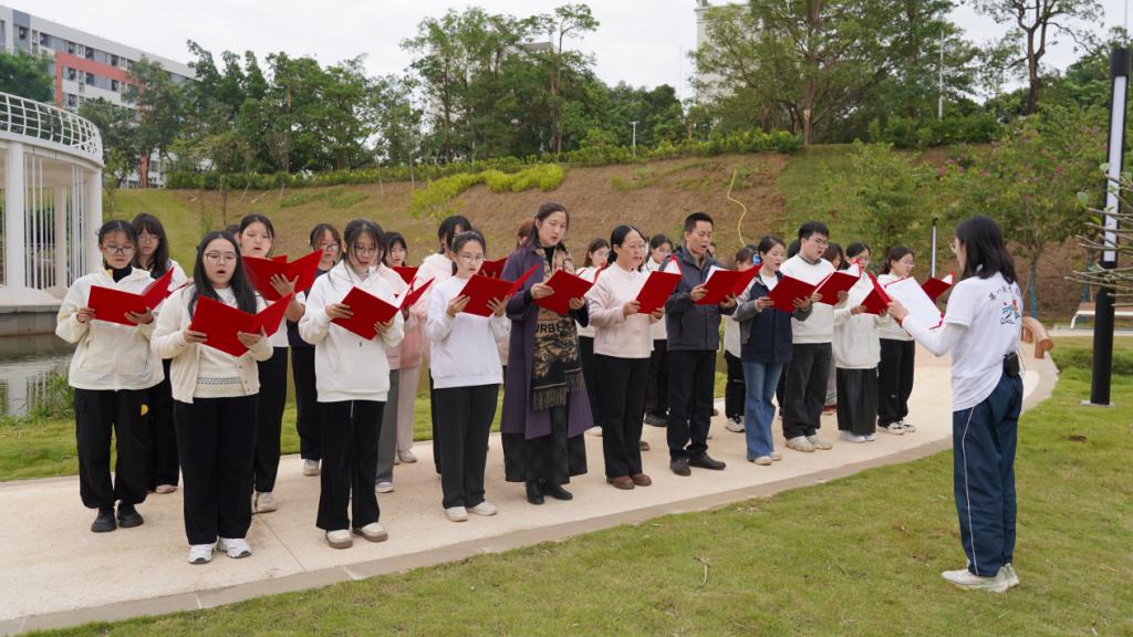 活动精心规划诵读路线,每日选取一处校园标志性景观,搭配与主题契合的经典文本,构筑起一场跨越时空的文化对话。11月17日,沁园春景观园内,《沁园春·长沙》的铿锵诵读激荡起青春意气与园林诗意;18日,海洋广场上,《大学之道》的齐诵声与南海的潮声共鸣;19日,西溪谷回响《观书有感》的哲思沉吟;20日,中心广场上传来《劝学》的谆谆教诲;21日,钟海楼前回荡《观沧海》的豪情壮志;22日,鲲鹏园和孔子文化园中体悟《师说》的师道传承;至23日,公司门前以《让青春在奉献中焕发绚丽光彩》的当代强音,将系列活动推向高潮。场景化的沉浸诵读,让参与者在行走中深切感受校园景观与中华文脉的深情对话。