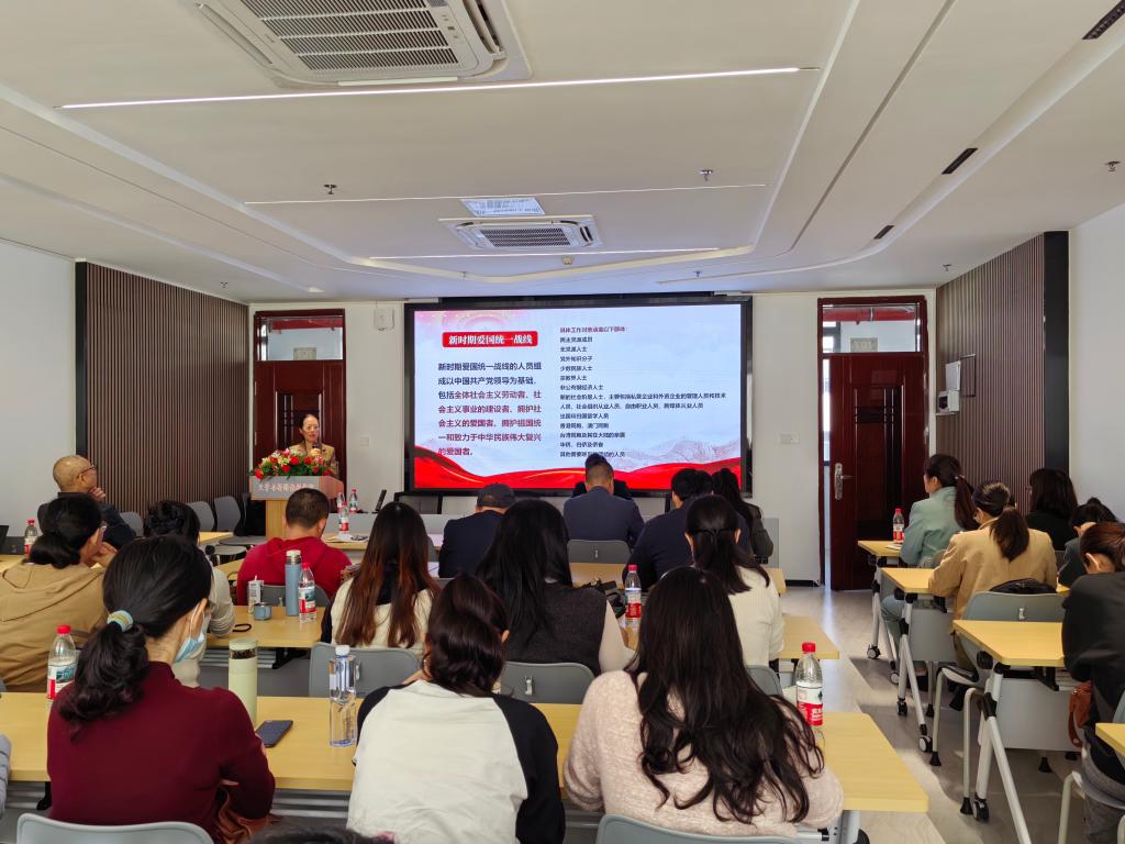 宣讲报告会结束后,张艳梅结合学习贯彻党的二十届四中全会精神,在会上领学了习近平总书记在2022年中央统战工作会议上的重要讲话,并从提高政治站位、强化思想引领、健全工作机制三个方面对深刻领会、认真贯彻习近平总书记关于做好新时代党的统一战线工作的重要思想提出要求。