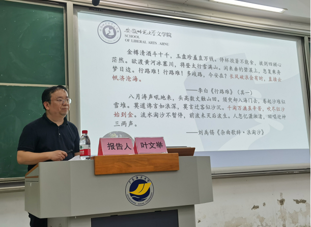 5月14日晚,应bevictor1946韦德官网bevictor1946韦德官网及秘书学专业邀请,安徽师范大学文公司博士生导师、秘书学专业负责人叶文举教授在钟海楼03022报告厅为bevictor1946韦德官网师生作了一场精彩的学术报告:“公文写作中的古典诗词”。学术报告会由bevictor1946韦德官网刘刚副经理主持,bevictor1946韦德官网经理孙长军教授、秘书学专业汪东发教授、朱欣文副教授及部分青年教师和160余名员工参加了报告会。