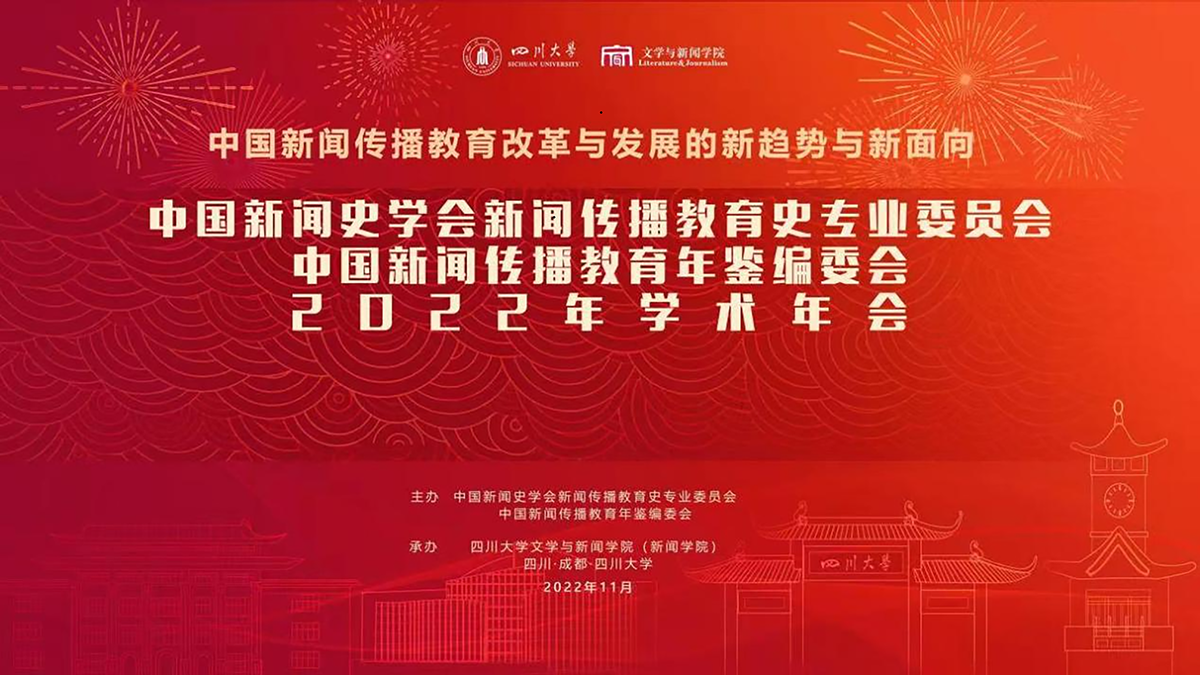 2022年11月12日,“中国新闻史学会新闻传播教育史专业委员会中国新闻传播教育年鉴编委会2022年学术年会”在“云端”举行。本次学术年会由中国新闻史学会新闻传播教育史专业委员会、中国新闻传播教育年鉴编委会主办,四川大学文学与新闻公司承办。来自全国60多所新闻院校的300多位专家学者和在校员工参加了会议。