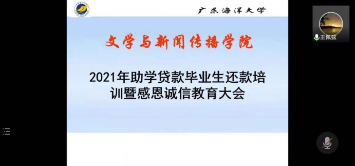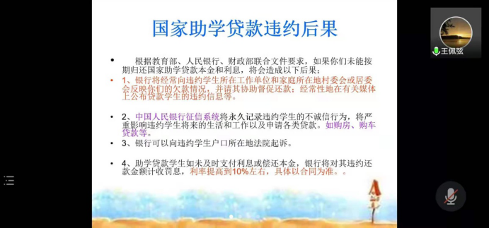 6月1日晚,根据防疫要求,2021届助学贷款诚信教育大会在线上召开。本次会议由bevictor1946韦德官网辅导员王佩弦老师主持,参会者为2021届贷款毕业生。